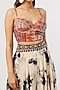 Featuring a white and black blouse in natural crepe base with tribal tassels detailing and mirror embroidery. It is paired with a contrasting red tie-dye printed chakra skirt having an embroidered waist band.