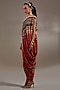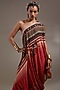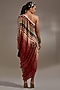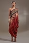 Sindoor-Colored Natural Crepe Printed & Embroidered One-Shoulder Draped Dress