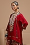 Featuring a sindoor short kurta in crushed silk base with inserts detailing. It is paired with natural crepe printed sharara pants. Accentuate with statement earrings and heels for festive occasions.