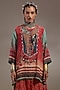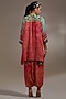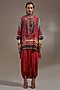 Featuring a sindoor red short kurta in natural crepe base with print and resham thread embroidery. It is paired with printed draped trousers. Accentuate it with zircon earrings, strappy heels and a clutch for family gatherings or festive ceremonies.
