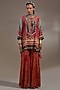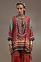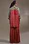 Featuring a sindoor red short kurta in natural crepe base with print and resham thread embroidery. It is paired with sharara pants. Accentuate it with zircon earrings, strappy heels and a clutch for family gatherings or festive ceremonies.