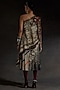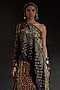 Featuring a surmai black top in natural crepe base with motif, thread, resham and beads embroidery. It is paired with a corduroy printed skirt. Accentuate it with dangler earrings and heels for a cocktail look.