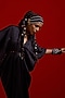 Featuring a surmai colored draped dress in tussar silk base with embroidery. Accentuate it with hoop earrings and embellished heels for evening soirees or a boho look.