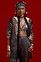 Featuring a surmai and mogra colored jacket in slub satin base with resham thread embroidery. It is paired with a printed draped skirt and a crush silk embroidered blouse. Accentuate it with a hoop earrings and high boots for a fusion or a boho look.