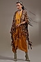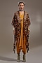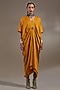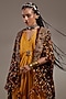 Featuring a yellow draped dress in crushed silk base with embroidery. It is paired with a sheer silk jacket having resham thread embroidery and print. Accentuate it with zircon earrings, strappy heels and a clutch for evening wear, date nights or cocktail parties.