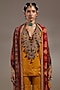 Featuring a yellow short kurta in crushed silk base with embroidery. It is paired with pants and a sheer silk dupatta. Accentuate it with zircon earrings, strappy heels and a clutch for family gatherings or festive ceremonies.