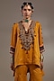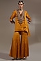 Featuring a yellow short kurta in crushed silk base with tassels and embroidery. It is paired with sharara pants. Accentuate it with zircon earrings, strappy heels and a clutch for family gatherings or festive ceremonies.