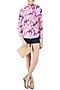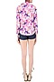 Featuring a blue button down shirt in crepe base with multicolor floral print all over the front and back. It has pearl buttons closure placket and knotted tie up detailing on side.