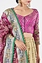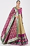 Featuring a beige lehenga in pure silk base with multi-colored pure brocade borders. It is paired with a contrasting fuschia pink brocade blouse and an organza dupatta having applique embroidery.