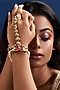 Gold Finish Red Kundan Polki & Green Pearl Hathphool