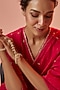 Featuring a pair of gold finish hathphools studded with yellow kundan polki, set in copper. Perfect for festive or wedding ceremonies.