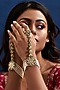 Gold Finish Yellow Kundan Polki & Pearl Net Hathphool