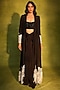 Featuring a black jacket in raw silk, crepe, net and bemberg satin base with ivory abstract floral paisley cutwork. It is paired with a bustier and a draped skirt. Style it with statement earrings, block heels and a clutch for sangeet ceremonies.