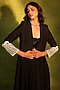 Black Raw Silk & Crepe Cutwork Jacket Set