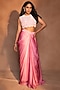 Pink Bemberg Satin & Crepe Draped Skirt Set