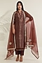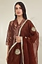 Featuring a brown kurta in tissue base. It is paired with pants, a slip and an organza dupatta having aari embroidery. Style it with dangler earrings and heels for a festive occasion.