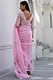 Featuring a pink saree in viscose silk organza base with zari and aari embroidery. It is paired with a matching embroidered unstitched blouse piece.