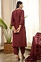 Featuring a purple kurta in muslin base with aari embroidery. It is paired with matching pants and an organza dupatta.