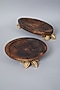 Crafted in perfection, this set of brown wooden oval platters with gold leaf pedestals is one of a kind. This platter is made from mango wood and iron and also makes a beautiful gift.