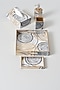 The black and gold spiral-printed bathroom set of five pieces includes a tissue box, soap dispenser, brush holder, and trays. This is what you need the most to organise the clutter on the counter in a bathroom and make it look impeccable. It has been made from MDF board with high-quality prints and a protective lacquer coating that makes the product look elegant and usable for a longer period of time.