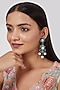 Featuring a pair of black rhodium finish earrings studded with faux diamond, green stone, and pearl, set in mixed metal.