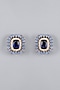 House of Vastraa presents a pair of gold finish stud earrings studded with blue stones, set in mixed metal.