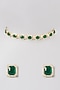 Gold Finish Emerald Green Stone Choker Necklace Set
