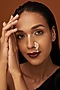 House of Aster presents a gold finish nose ring studded with zircons, set in mixed metal. This nose ring is a testament to refined taste and timeless style, ideal for festive occasions or wedding ceremonies.