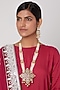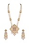Featuring a gold finish necklace studded with faux pearls and kundans, set in mixed metal. It is paired with a matching pair of earrings.