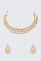 House of Aster presents a gold finish necklace studded with zircons, set in mixed metal. It is paired with a matching pair of earrings. Elevate your style with our Necklace Set with any ethnic attire for a special occasion.