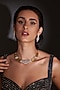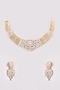 House of Aster presents a gold finish necklace studded with zircons, set in mixed metal. It is paired with a matching pair of earrings. Elevate your style with our Jewellery Set with any ethnic attire for a special occasion.
