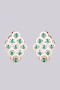 Featuring a pair of rose gold finish earrings studded with faux diamonds and green stones, set in mixed metal.