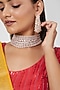 House of Aster presents a rose gold finish choker necklace studded with zircons, set in mixed metal. It is paired with a matching pair of earrings. Elevate your style with our Necklace Set with any ethnic attire for a special occasion.