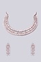 House of Aster presents a rose gold finish necklace studded with zircons, set in mixed metal. It is paired with a matching pair of earrings. Elevate your style with our Necklace Set with any ethnic attire for a special occasion.