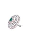 Featuring a silver plated ring studded with faux diamonds and emerald, set in mixed metal.