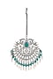 Silver Plated Faux Diamond & Green Pearl Maang Tikka