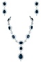 Featuring a silver plated faux necklace studded with sapphire and diamonds, set in mixed metal. It is paired with matching earrings.