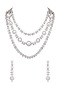 Featuring a white finish layered necklace studded with faux diamonds and pearl, set in mixed metal. It is paired with a matching pair of earrings.