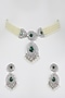 House of Aster presents a white finish choker necklace studded with zircons, green stone, and pearls, set in mixed metal. It is paired with a matching pair of earrings. Elevate your style with our Necklace Set with any ethnic attire for a special occasion.