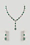 House of Aster presents a white finish necklace studded with emeralds and zircons, set in mixed metal. It is paired with a matching pair of earrings. Elevate your style with our Necklace Set with any ethnic attire for a special occasion.