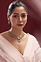 House of Aster presents a white finish necklace studded with faux diamonds and emeralds, set in mixed metal. It is paired with a matching pair of earrings. Elevate your style with our Necklace Set with any ethnic attire for a special occasion.