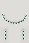 White Finish Faux Diamond & Emerald Synthetic Stone Necklace Set