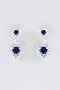 White Finish Faux Diamond & Blue Stone Dangler Earrings