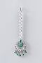 House of Aster presents a white finish maangtikka studded with faux diamonds and green stones, set in mixed metal. Embrace timeless elegance with this exquisite zircon maangtikka.