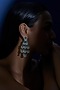 House of Aster presents a pair of white finish dangler earrings studded with zircons and green synthetic stone, set in mixed metal. These earrings are a testament to refined taste and timeless style, ideal for festive occasions or wedding ceremonies.
