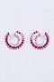 Rose Gold Finish Red Synthetic Stone & Zircon Hoop Earrings