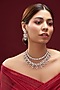 House of Aster presents a white finish layered necklace studded with white faux diamonds, set in mixed metal. It is paired with a matching pair of earrings. Elevate your style with our Necklace Set with any ethnic attire for a special occasion.