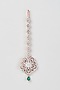 House of Aster presents a white finish maangtikka studded with zircons and emerald stones, set in mixed metal. This maangtikka is a testament to refined taste and timeless style, ideal for festive occasions or wedding ceremonies.