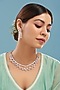 House of Aster presents a white finish layered necklace studded with faux diamonds, set in mixed metal. It is paired with a matching pair of earrings. Elevate your style with our Necklace Set with any ethnic attire for a special occasion.