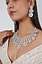 Featuring a white finish necklace with faux diamonds, set in mixed metal. It is paired with a matching pair of earrings.